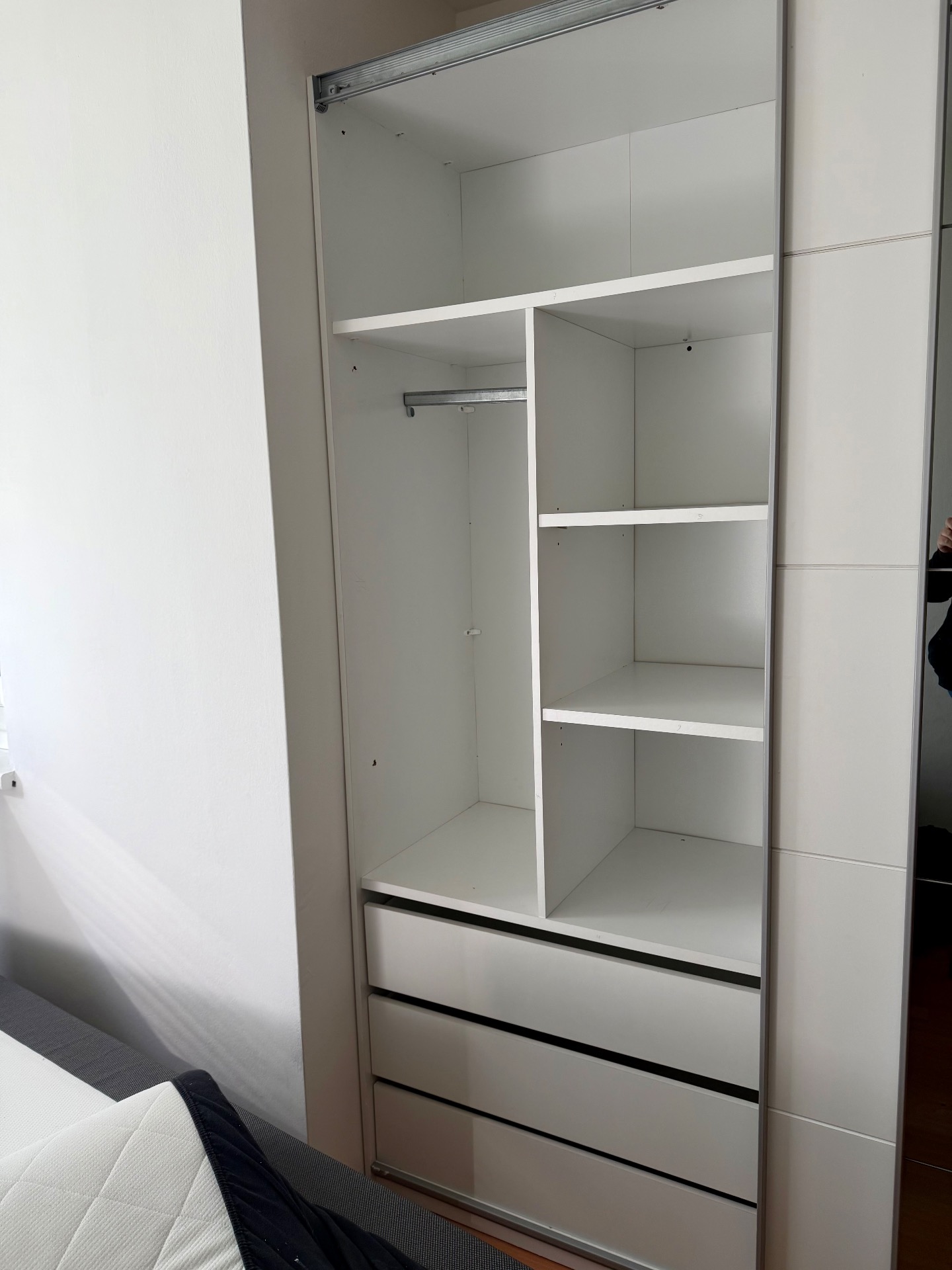 Fehér/tükrös tolóajtós szekrény